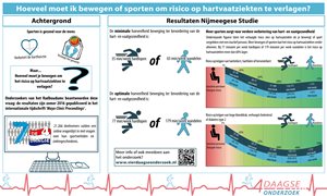 Sporten is gezond. Maar hoeveel moet iemand bewegen om het risico op het krijgen van hart- en vaatziekten zoveel mogelijk te verlagen? Die vraag wilden fysiologen Thijs Eijsvogels en Martijn Maessen van het Radboudumc graag beantwoorden. Zij volgden hiervoor tien jaar lang het beweegpatroon van ruim 20.000 hardlopers en wandelaars tijdens de Nijmeegse Vierdaagse en Zevenheuvelenloop. Deze cijfers vergeleken zij met het beweegpatroon van inactieve vrienden en familieleden van de sportievelingen.
